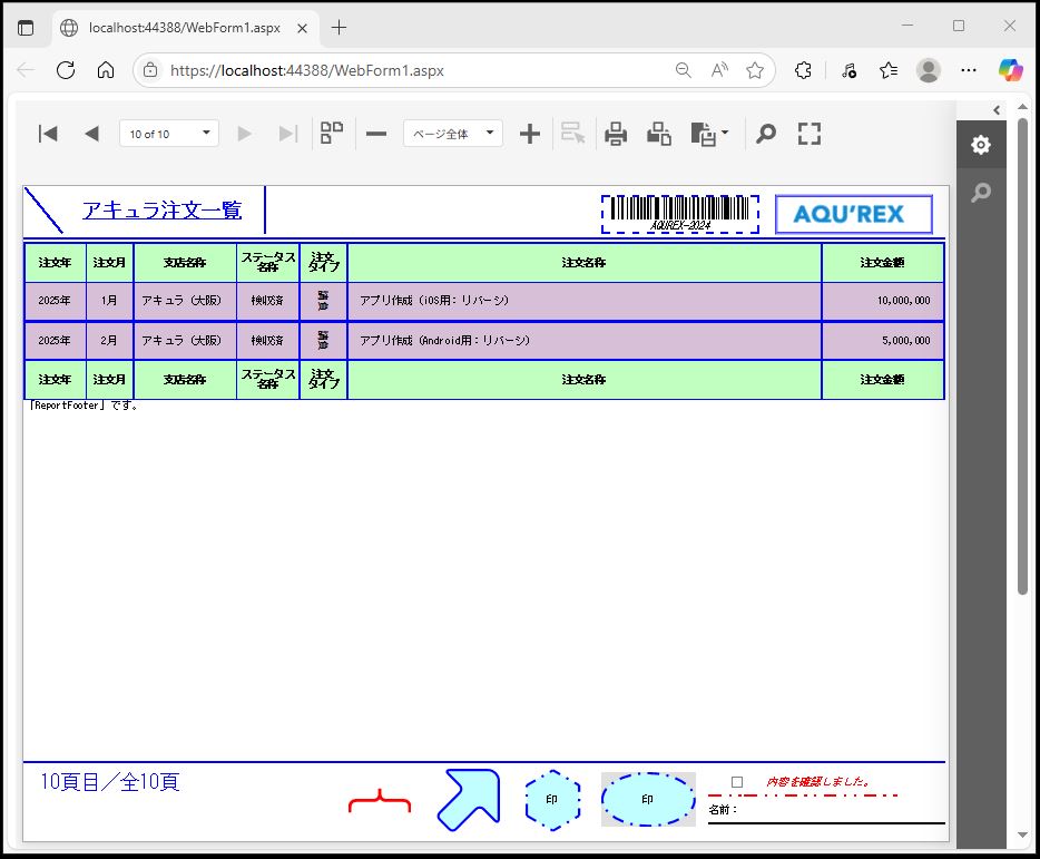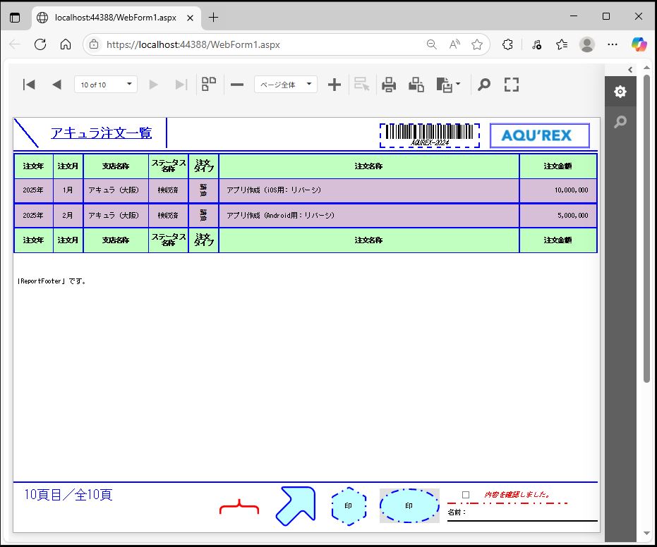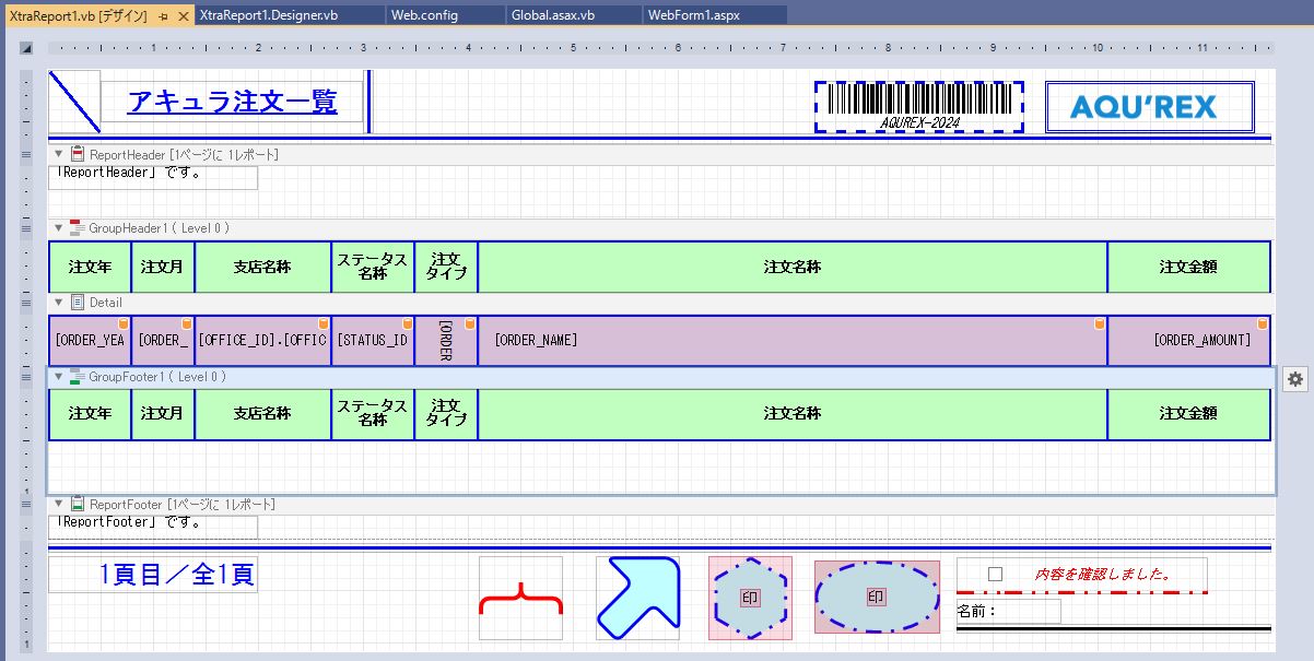 DevExpress での一覧、帳票等のレポート(ASPxWebDocumentViewer)の「GroupFooter」の高さ設定のサンプルです。