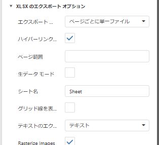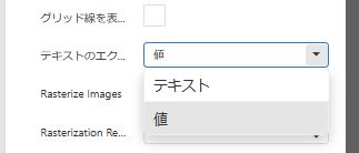 「エクスポートのオプション」ボタンから「XLSXのエクスポートのオプション」を開いて「テキストのエクスポートモード」を「テキスト」設定します。