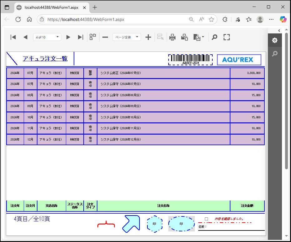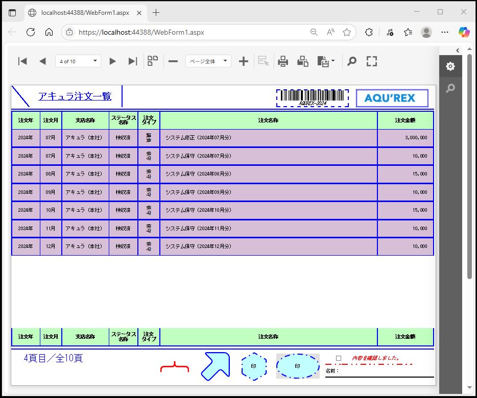 DevExpress での一覧、帳票等のレポート(ASPxWebDocumentViewer)のグループヘッダーページ毎表示条件設定のサンプルです。