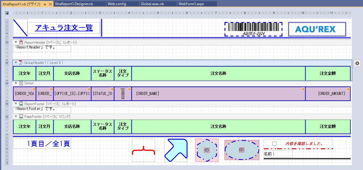 無事、一覧、帳票等のレポート(ASPxWebDocumentViewer)のグループヘッダーページ毎表示条件設定が出来ました。