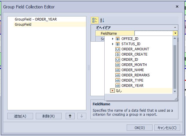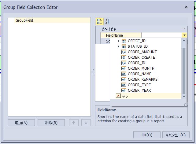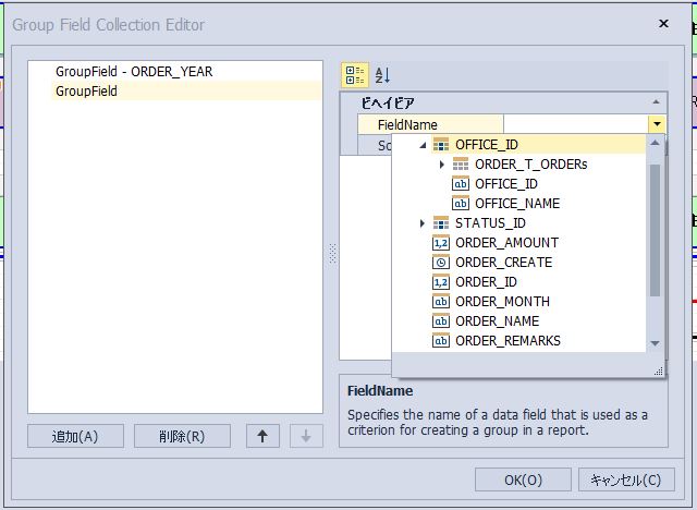「Group Field Collection Editor」の「FieldName」項目を選択します。