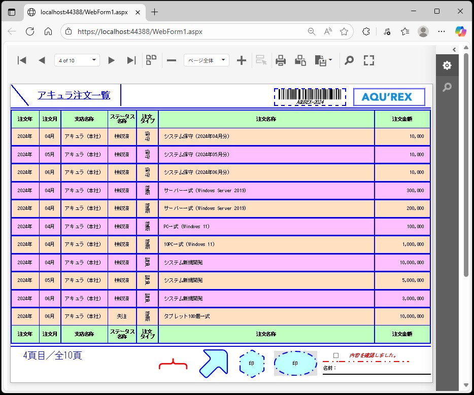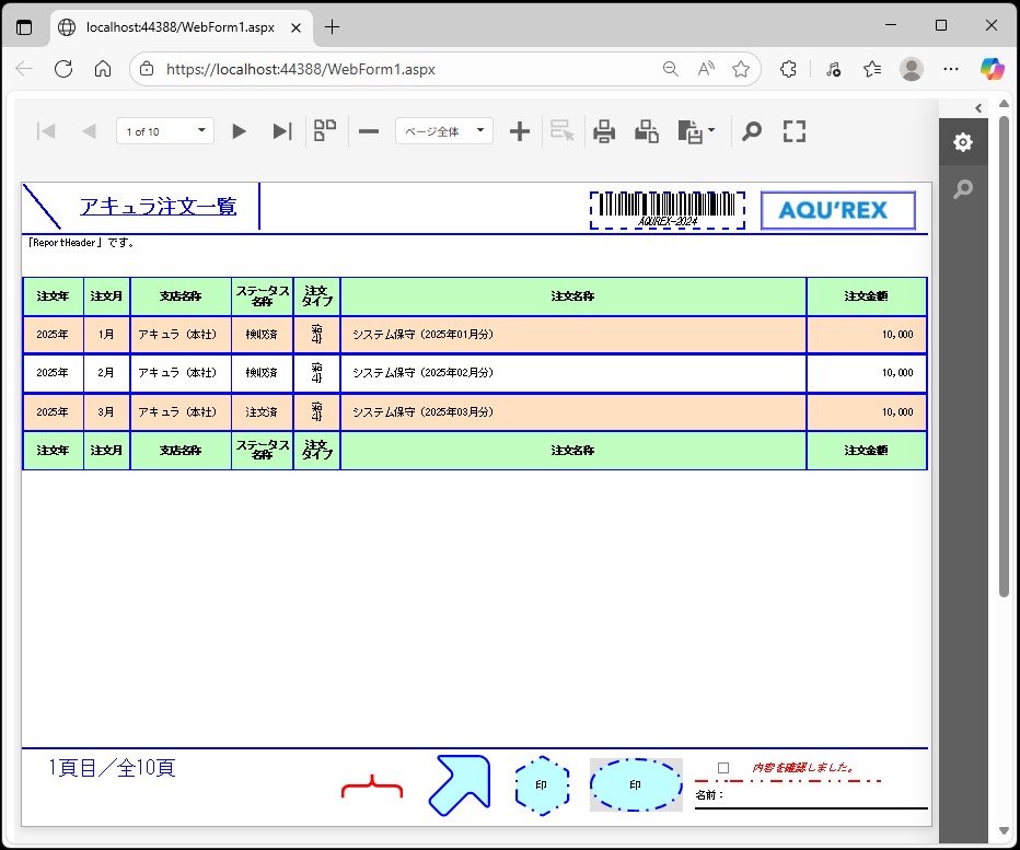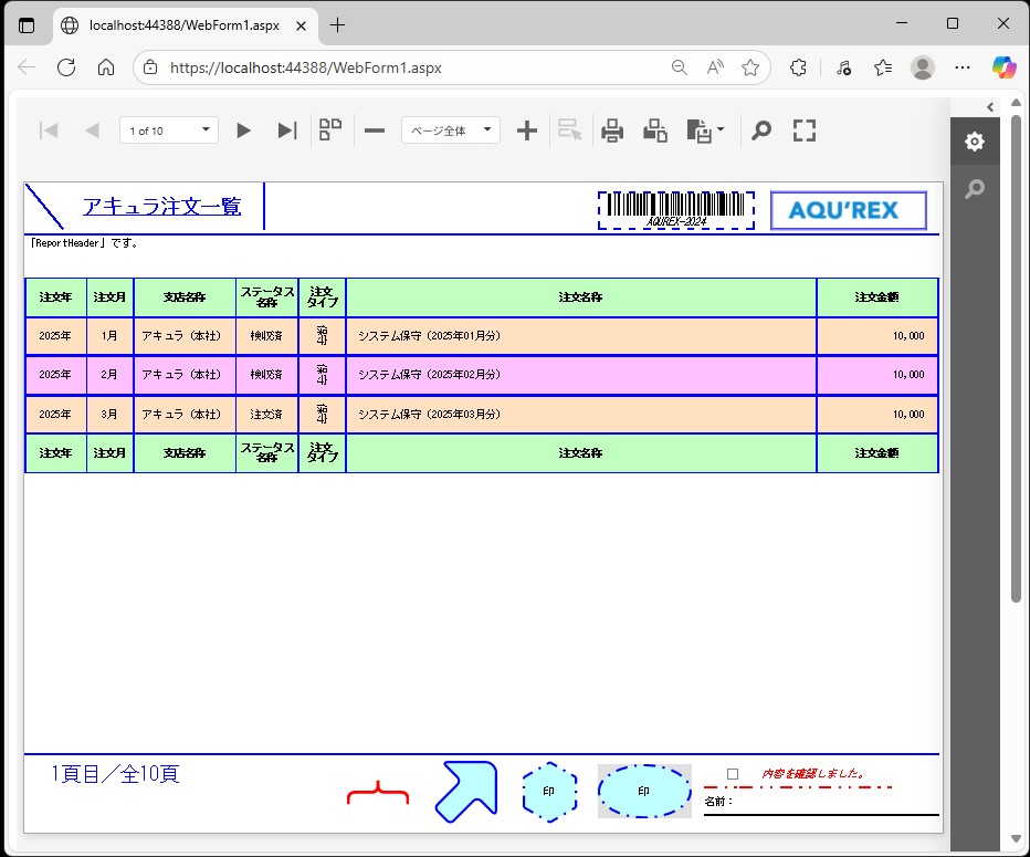 無事、一覧、帳票等のレポート(ASPxWebDocumentViewer)のレコード背景色(交互:偶数)設定が出来ました。