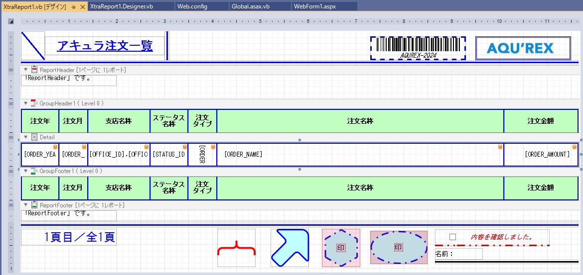 DevExpress での一覧、帳票等のレポート(ASPxWebDocumentViewer)のレコード背景色(交互:偶数)設定のサンプルです。