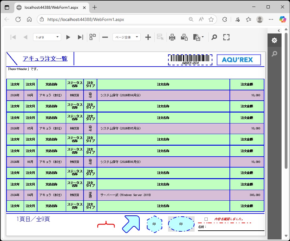 無事、一覧、帳票等のレポート(ASPxWebDocumentViewer)の1件1葉設定が出来ました。