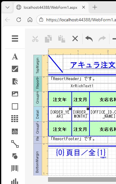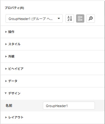 <レポートデザイナ(ASPxReportDesigner)のグループヘッダー領域(GroupHeader)設定>