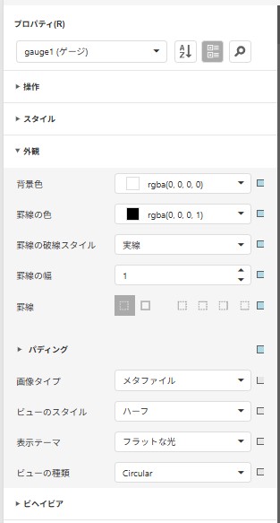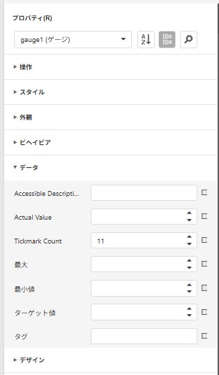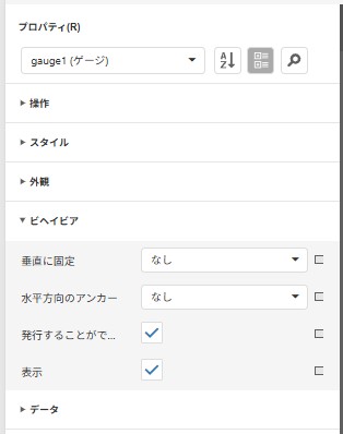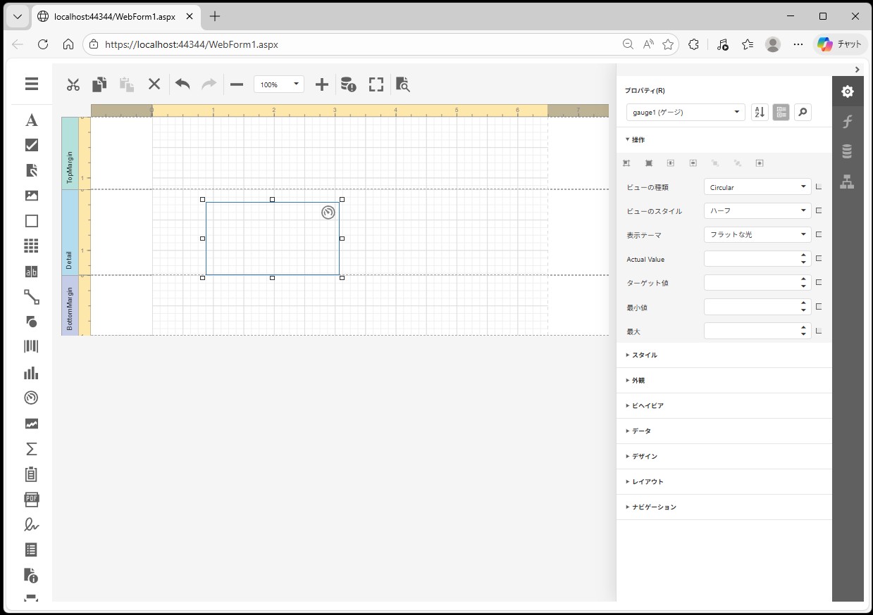 無事、一覧、帳票等のレポートデザイナ(ASPxReportDesigner)のゲージ(gauge)配置が出来ました。