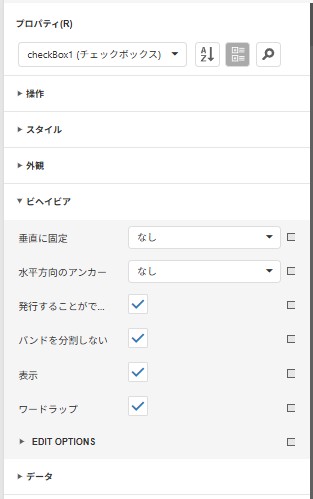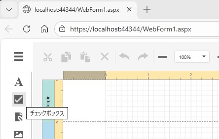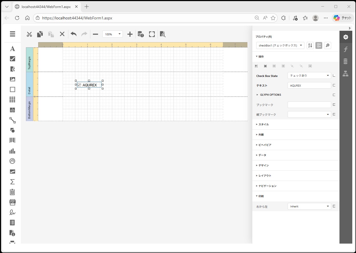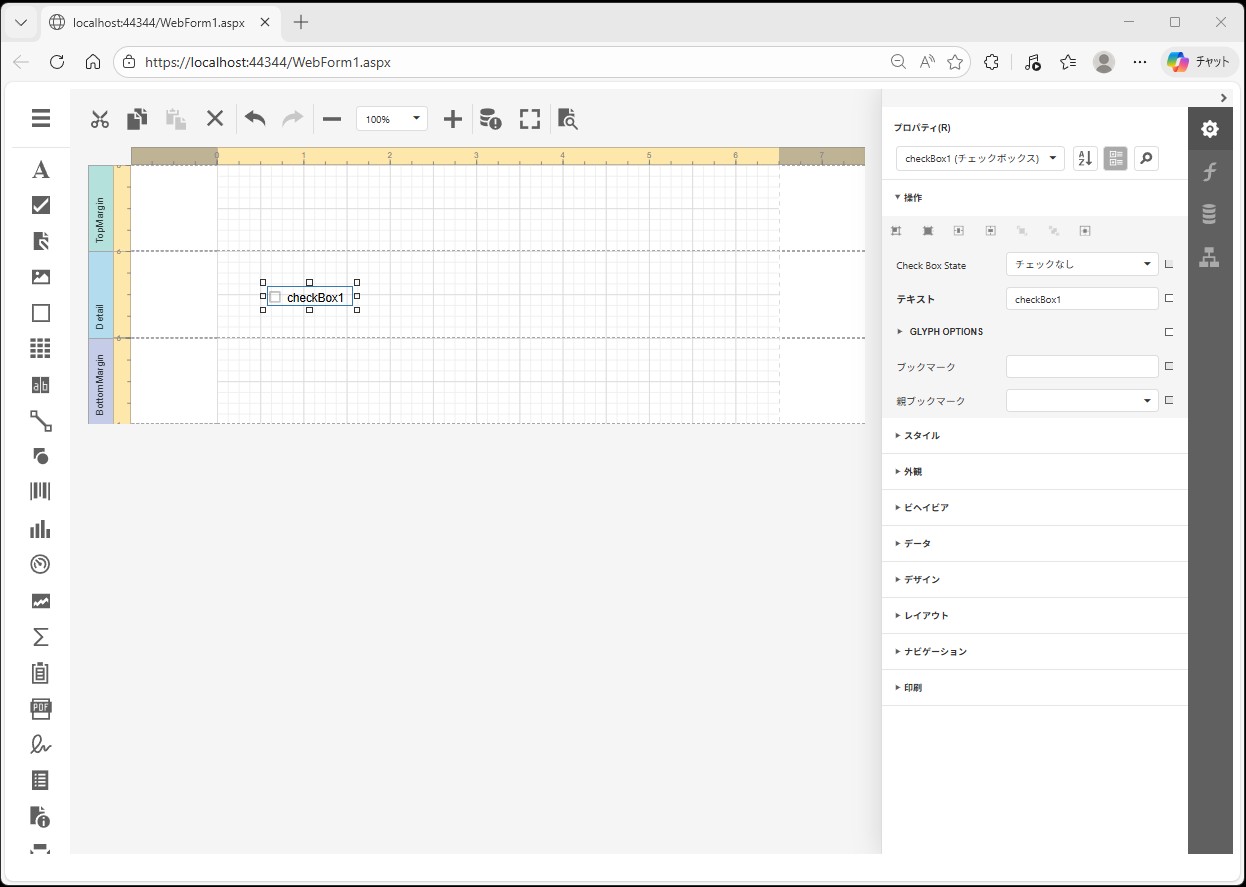 <レポートデザイナ(ASPxReportDesigner)のチェックボックス(checkBox)配置>