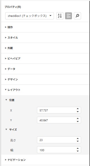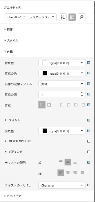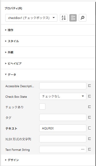「操作」の「Check Box State」、「テキスト」項目を変更します。