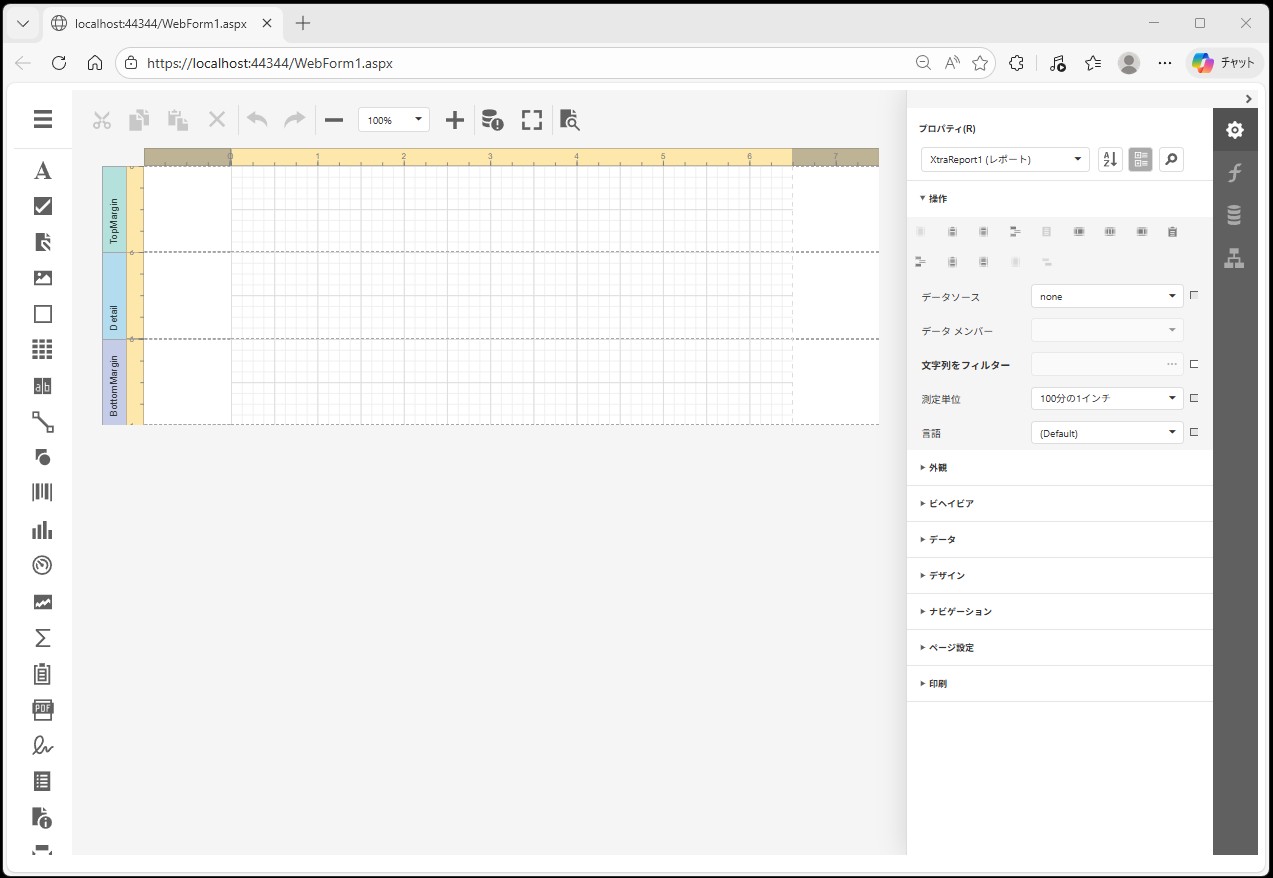 DevExpress での一覧、帳票等のレポートデザイナ(ASPxReportDesigner)のリッチテキスト(richText)配置手順です。