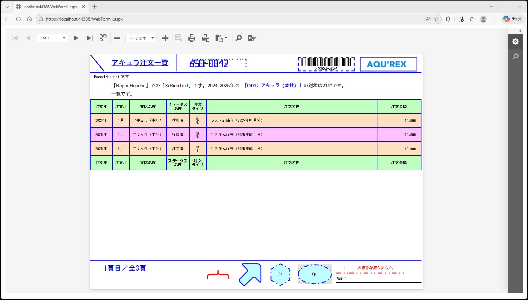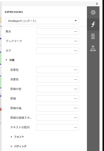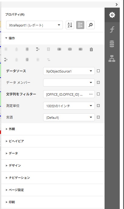 <レポートデザイナ(ASPxReportDesigner)の右メニュー設定>