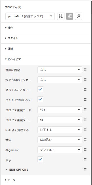 無事、一覧、帳票等のレポートデザイナ(ASPxReportDesigner)の画像ボックス(pictureBox)配置が出来ました。